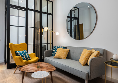 Reflective beauty with handcrafted wooden frames.